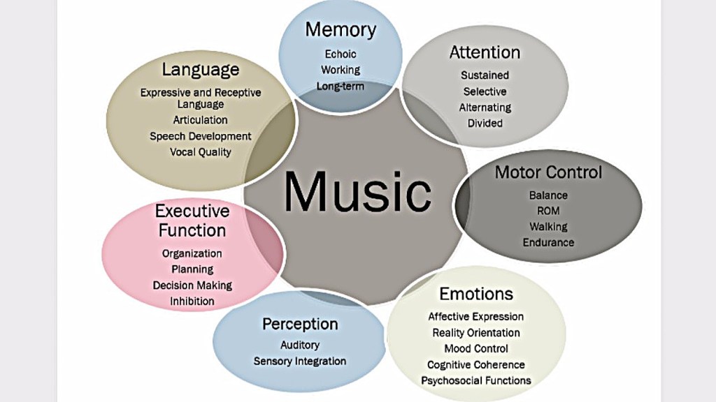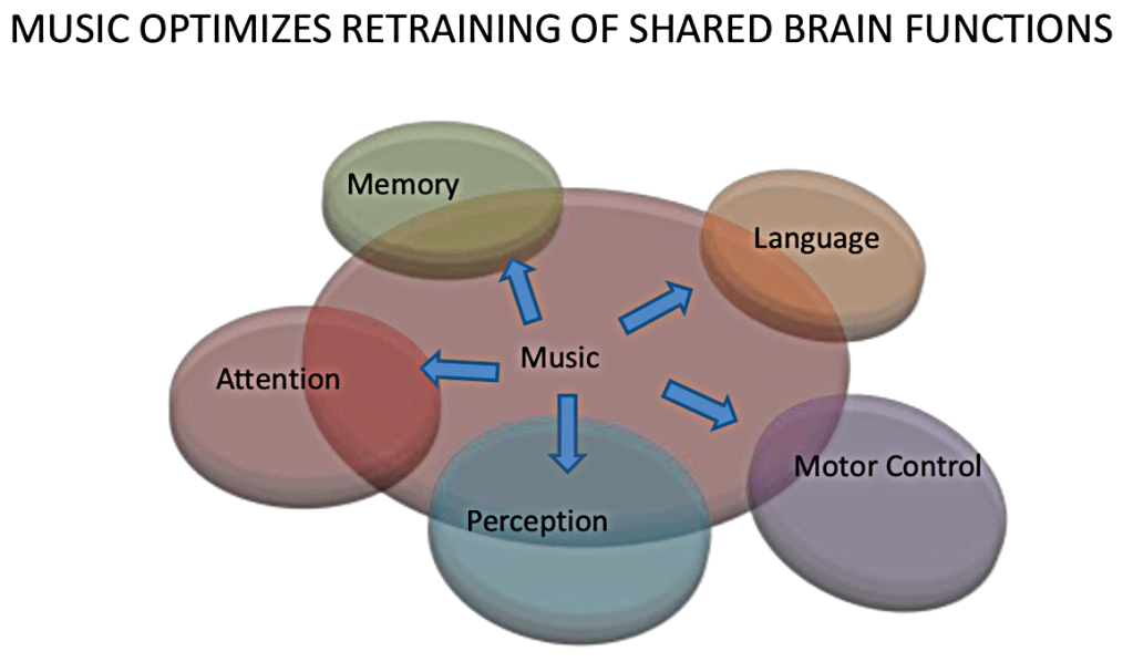When we engage in music, whether it is listening, singing, or playing an instrument, all areas of our brains are activated. Different from the standard approach of music therapy, the core theory, treatment, and clinical techniques of Neurologic music therapy (NMT) are based on the neuroscience model of music perception and production; as well as how music influences the functional changes in non-musical brain and behaviours.